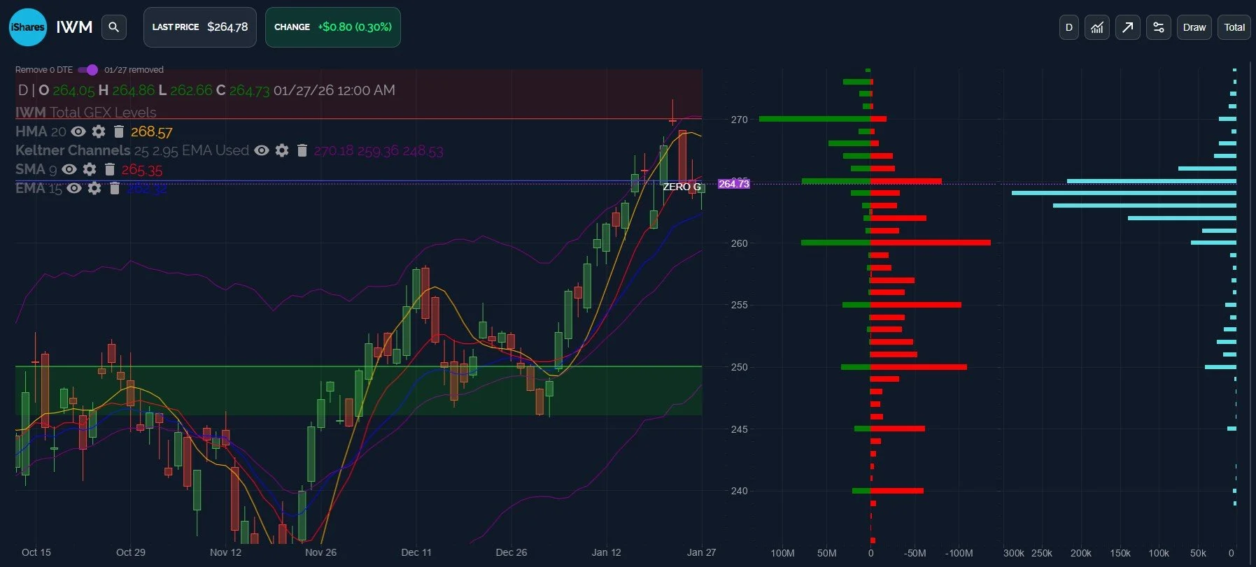 If IWM does see a pullback to 260, will other indices follow, or does IWM have “Opposite Day” on repeat as QQQ ramps up ahead of Big Tech? We’ll find out soon, and we’ll watch for intraday clues along the way.