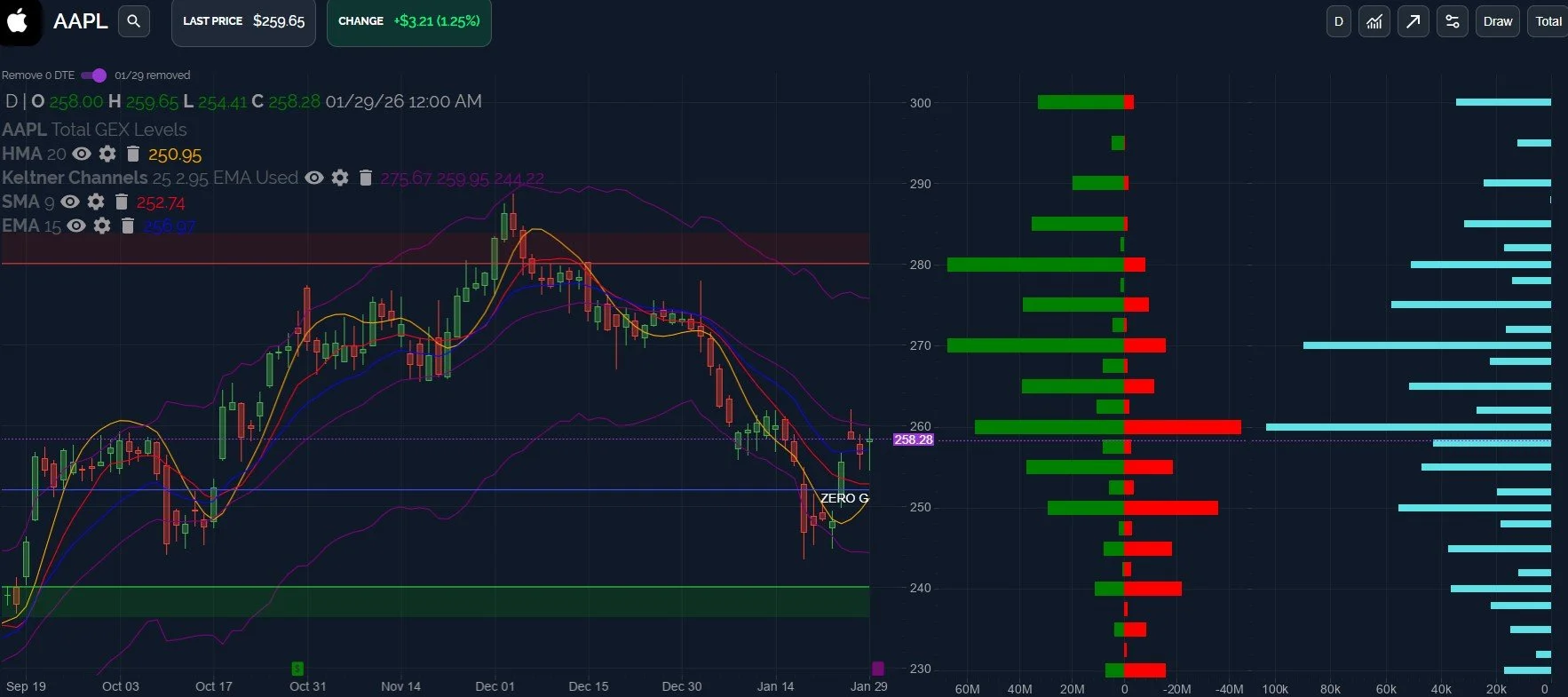 With AAPL having reported earnings after the bell, and at least the headlines emphasizing an earnings/revenue beat, we haven’t seen much of a reaction. Glancing at the GEX picture from today, which at least gives some context (with risk of changing tomorrow), bulls might want to see 250 hold to preserve potential to reach 270-280.