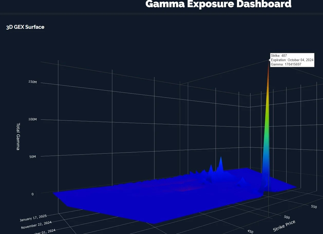 We mentioned Friday’s announcement of the 487 level, which we identified using our GEX data graph and you can also see how we identify significant GEX levels using our 3D chart below.