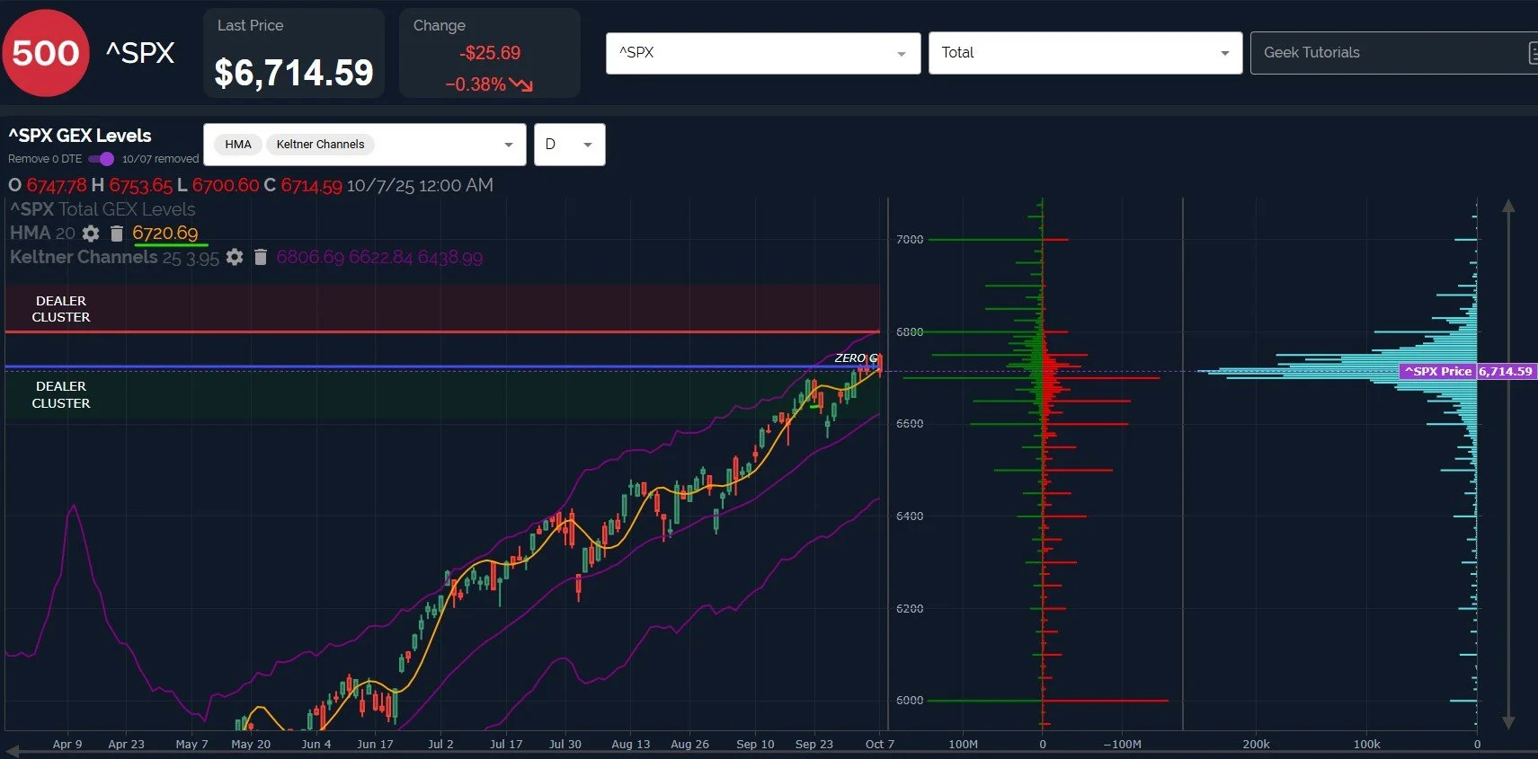 Indices give a less convincing setup at this exact moment, with SPX closing a hair below the Hull, with noteworthy GEX still awaiting us at 6800. 6700 becomes an all-important level, with a gap below potentially signaling a faster trip down to 6500-6600.