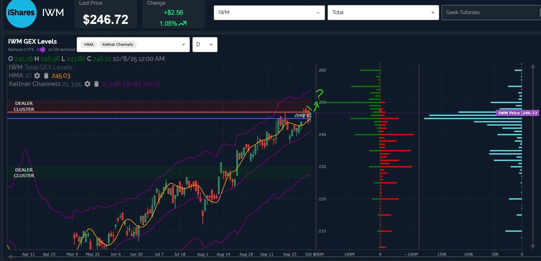 With the big positive GEX cluster still waiting at 250, and attempts toward 250 stopping shy at the 248 area, it seems reasonable to expect that 250 may finally be tagged in the next day or two.