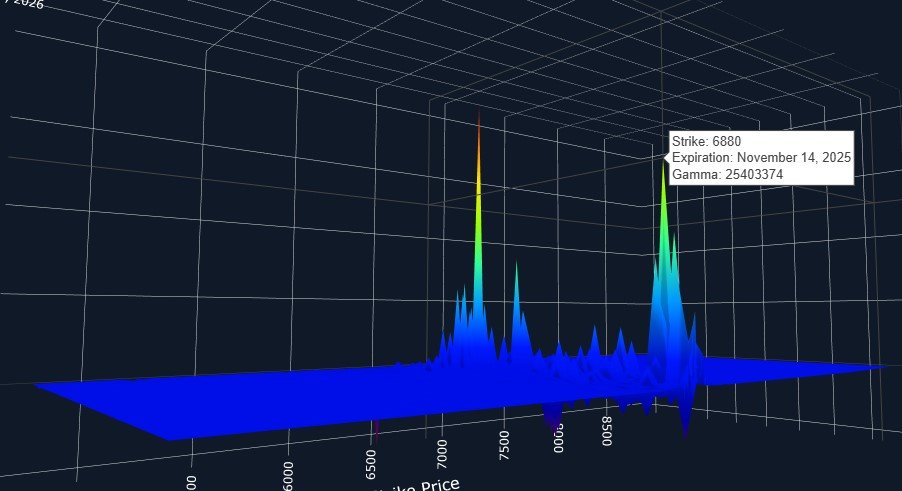 Looking at SPX’s 3D graph for this week, we have 6880 as the largest GEX cluster expiring Friday, with a close 2nd represented by 6950, if you can believe that. The whipsaw appears to be in play.