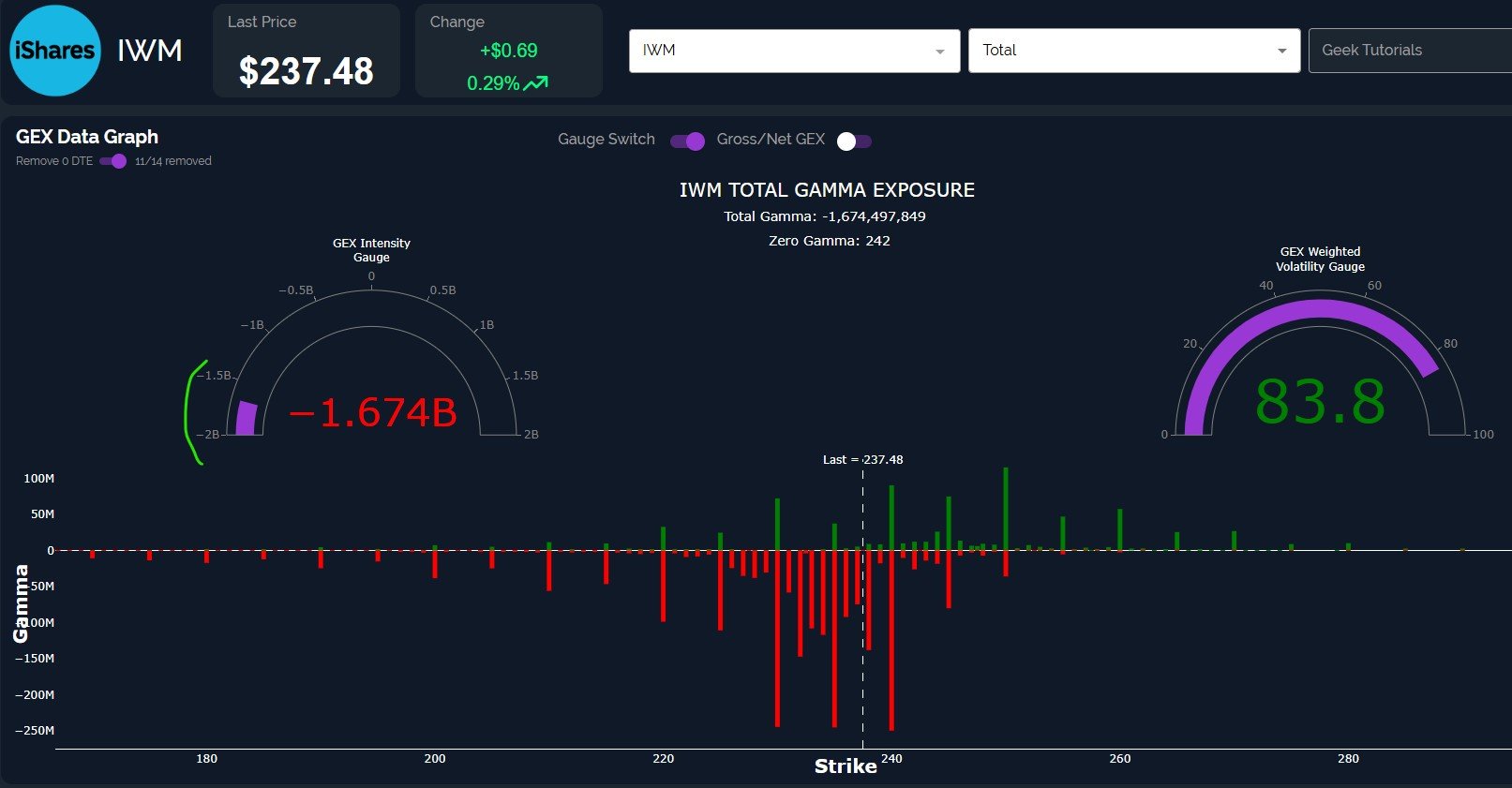 IWM did see net GEX increase slightly, but not in a major way, even though GEX is on the floor in terms of a deeply negative GEX reading currently.