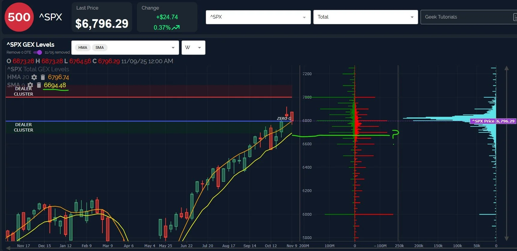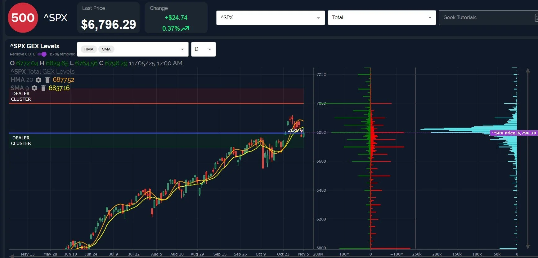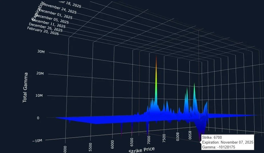 To add to the most recent statement, 6700 is the largest GEX cluster set to expire November 7, bringing the possibility of a further decline into the forefront as we approach Friday.