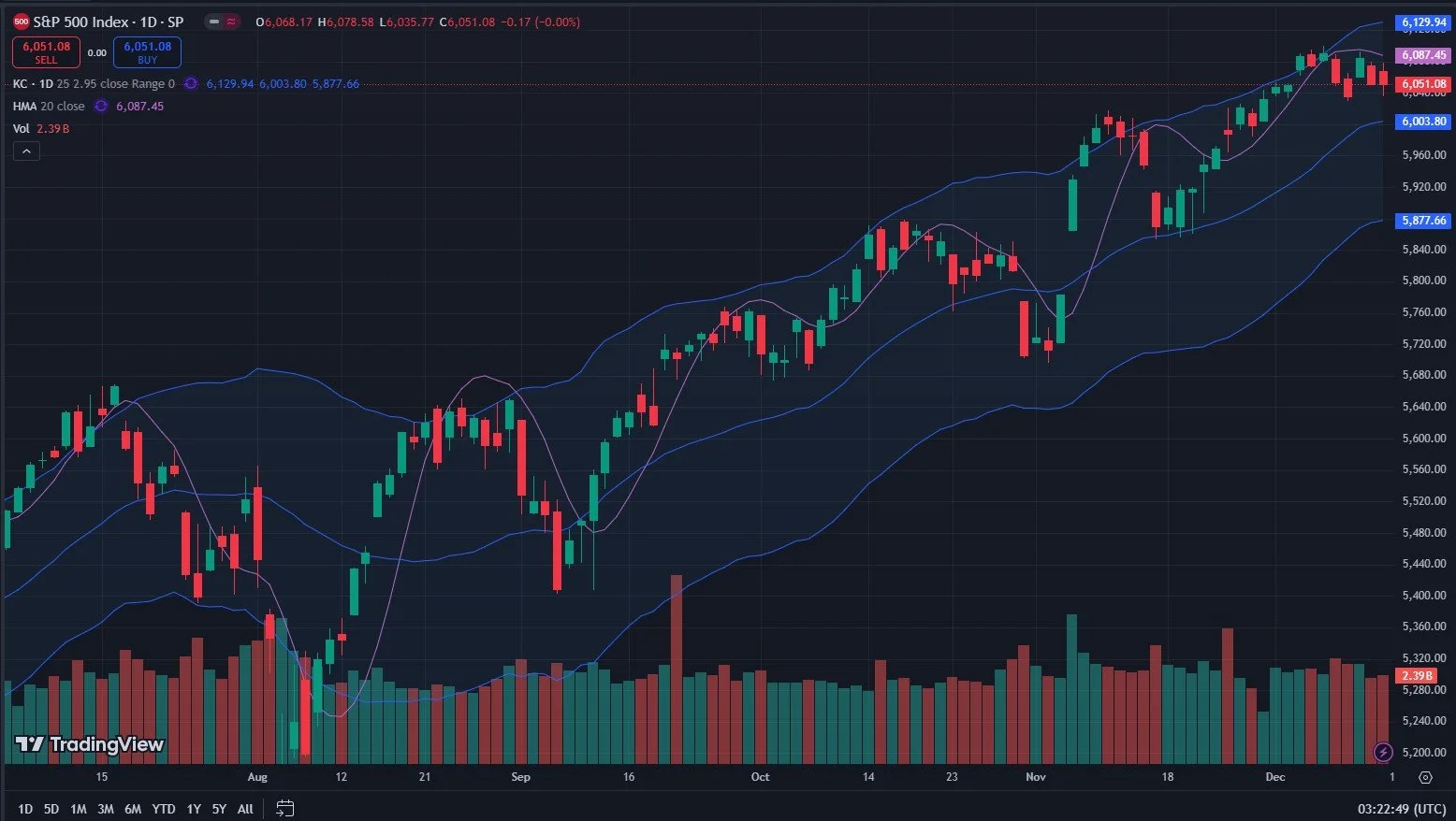 As we look at bullish and bearish contrasting cases for volatility, I also note the whacky wick down to 10.62 that you can see circled on the Tradingview chart back in July. That candle (if real) seems very out of place, but it almost matches up with the lower Keltner channel now at 10.45. I know traders who follow strategies based on ghost candles seen on SPY after hours, they have some interesting stats and theories behind those candles…Sorry to get off track, that’s for another day. Could a final “stick it to the bears” rally take the VIX back to sub-11 before January? Why not! It’s hard to say that’s the base case, but it’s possible. We could also see the VIX rise with the market into year-end..Interesting times indeed.