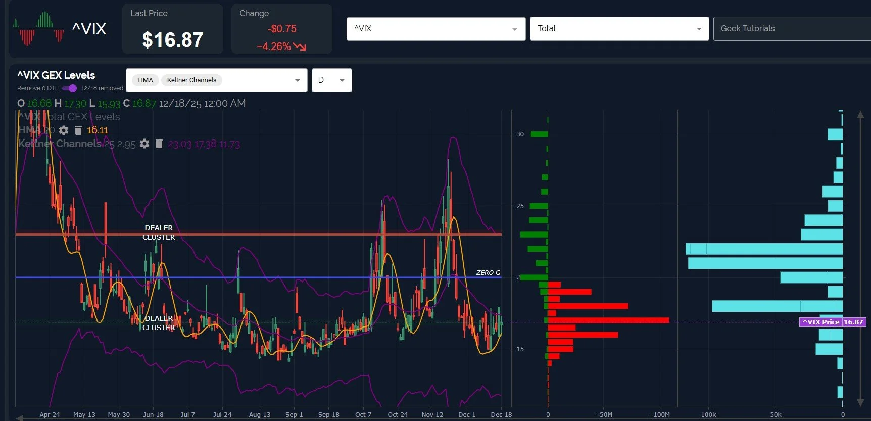 OpEx or not, the 12/31 positive GEX cluster is still there, but completely offset by negative GEX, and we won’t waste time speculating as to “why.” It’s no mystery we have a shrinking timeframe to see 7000 in 2025, yet the question remains, where are we headed next?