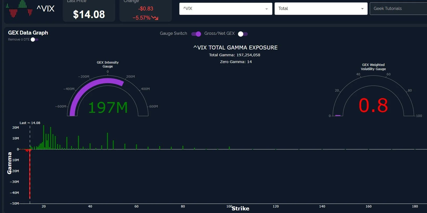 One of the bigger head scratchers today is the positive GEX on the VIX, which has actually increased in recent days despite the strong downward move in the VIX.