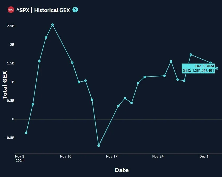 One interesting negative factor is the decline in positive GEX while we see price hitting new highs. I would not be comfortable calling any top, and 1.36B is still solidly positive, so it’s too early to make any contrarian prediction based on this data point, but the lack of GEX pushing more positive is noteworthy.