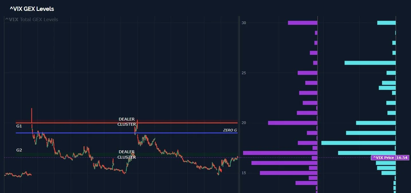 Also, in total contrast to SPX, QQQ shows to be sitting in an upper Dealer Cluster zone, where dealers may become sellers. It’s hard to ignore the eye sore we can call the 510 GEX cluster, which is very visible and outsized compared to strike above 510. Is this a pullback target? 2-2.5% downside is quite minimal in the big picture, so this wouldn’t suggest a huge trend change for the market, but it might seem more painful for those using too much leverage on the long side.