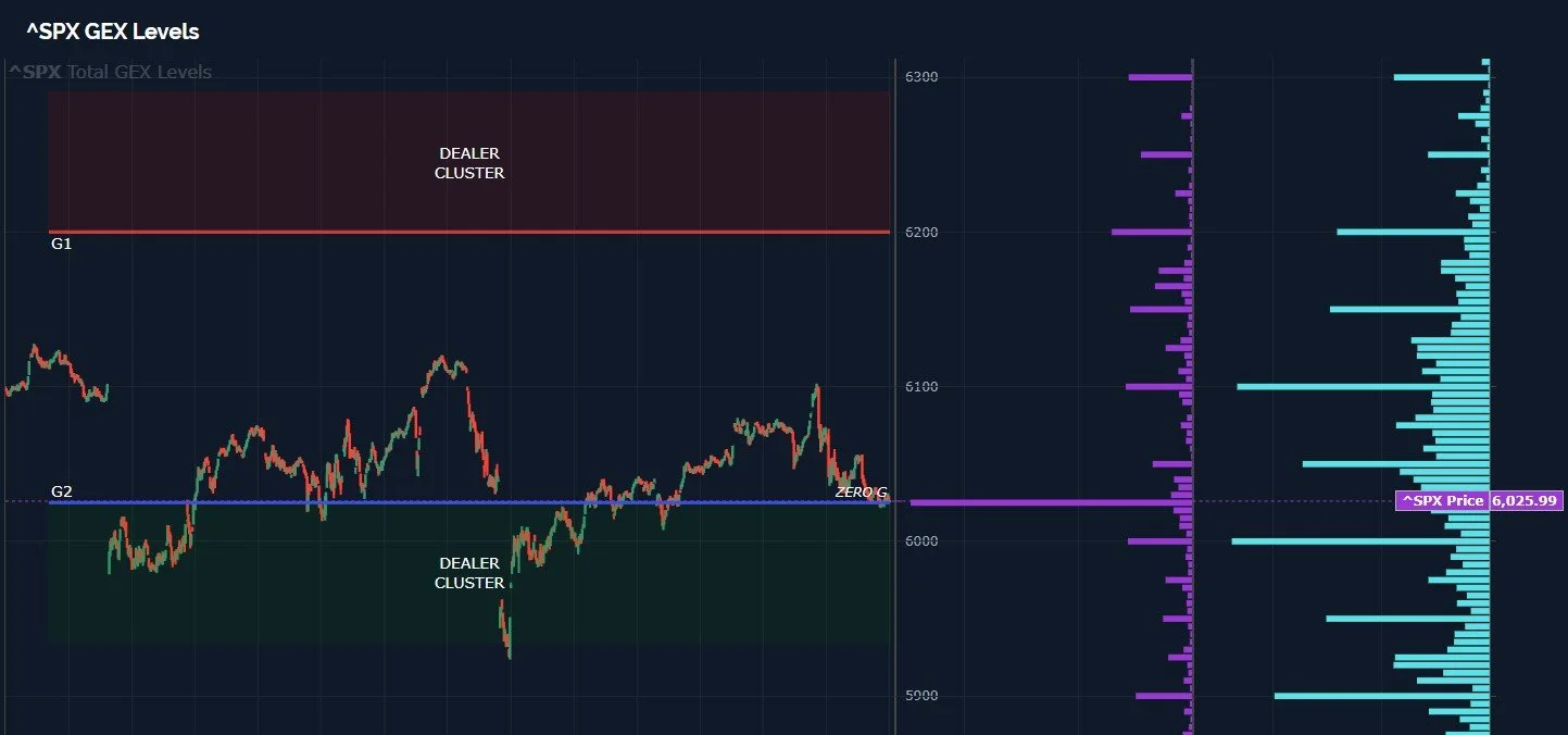 Indices gave up 2 days worth of gains Friday, bringing indices back below the Hull moving average as we continue sideways in a very choppy fashion since January 21. Outside of Thursday, the Hull has signaled to me to have a short bias (daily closes below the Hull) since Friday the 24th, though of course there were times that we were far enough below the Hull to have expected some of the rebounds we saw along the way. Gamma (GEX) continues to display uncertainty despite higher strikes at 6200+ remaining, so what do we do now? We’ll discuss mostly SPX and QQQ in today’s newsletter, and in our YouTube video we delve into several other tickers. You can check out the short video by clicking here.