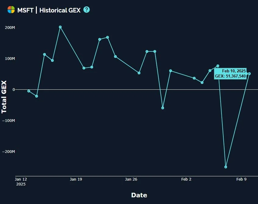 Somewhat similar to QQQ, MSFT GEX made a dramatic swing from negative to positive between Friday’s and Monday’s close.