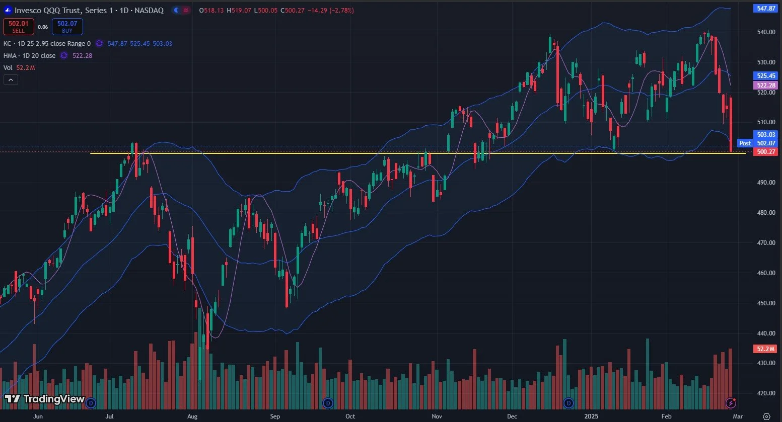 We can say a lot of the same things about QQQ that we can say about SPY, but wow, QQQ’s chart looks much worse, in my view. No net gains since July 2024, that’s 7 months of A.I. hype with nothing to show for it. Yikes. On the bright side, QQQ has overshot the lower Keltner channel, which is not a situation likely sustained for very long, and perhaps this general area at the big, round 500 is a good spot for Custer to make a last stand. GEX shows potential to drop to 480-490, so don’t get too excited, just be mindful that the last 5 days have really created some oversold readings. Even March 2020 had some big rallies along the way.