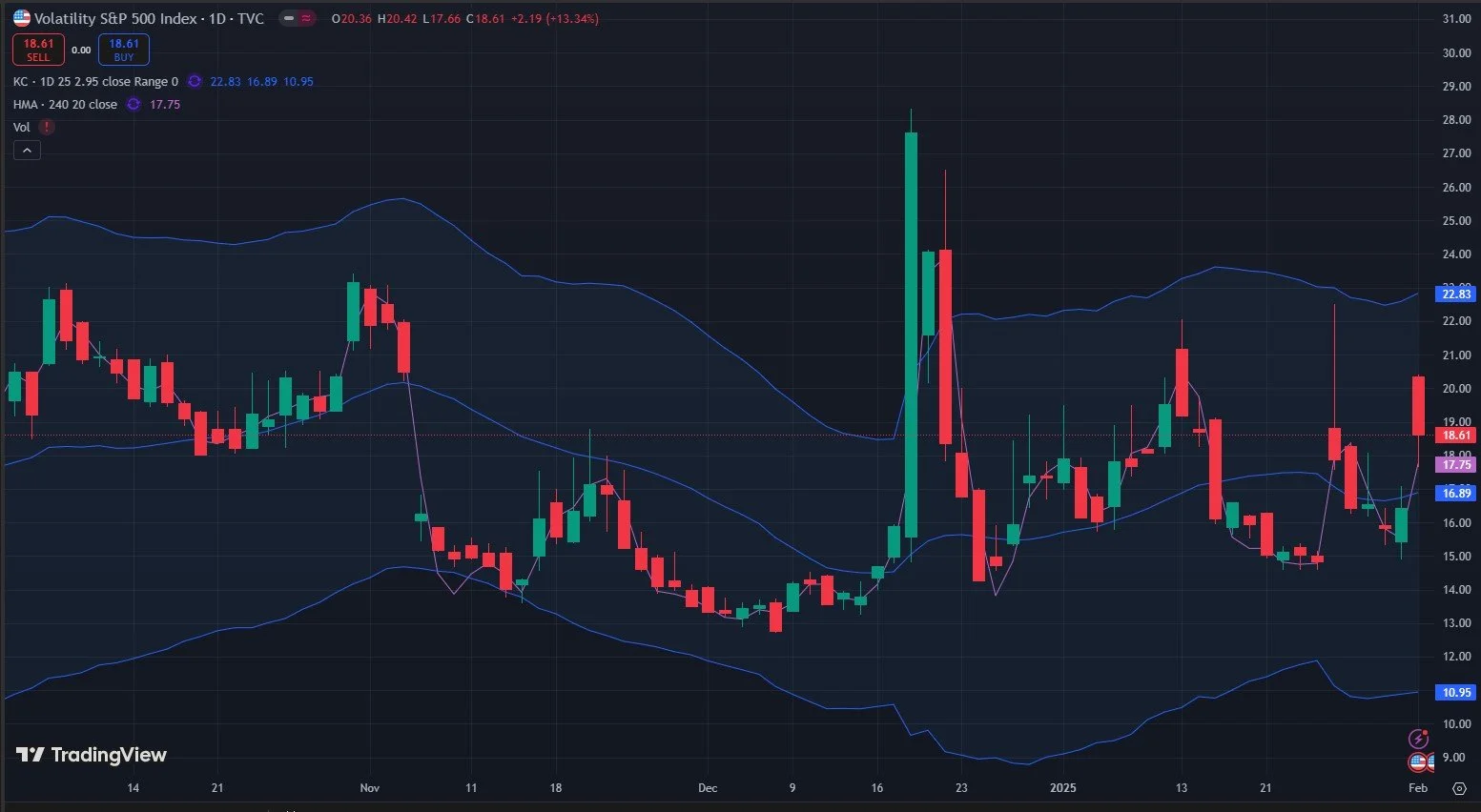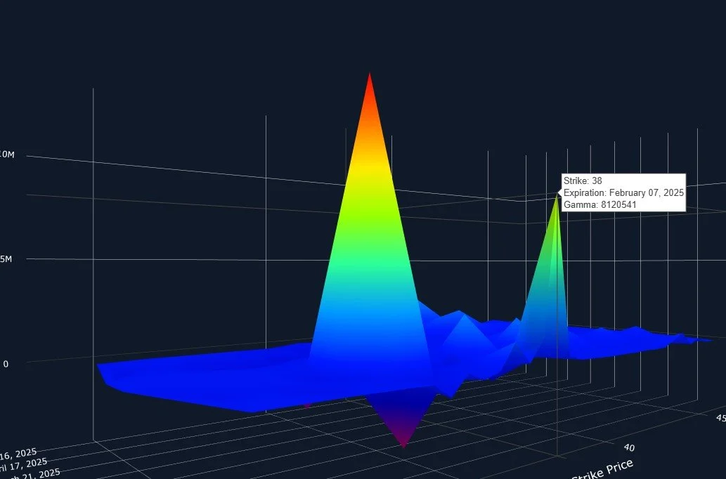 The largest GEX cluster for this Friday is at 38, which coincides with the middle Keltner channel, a viable target if we close above the Hull soon.