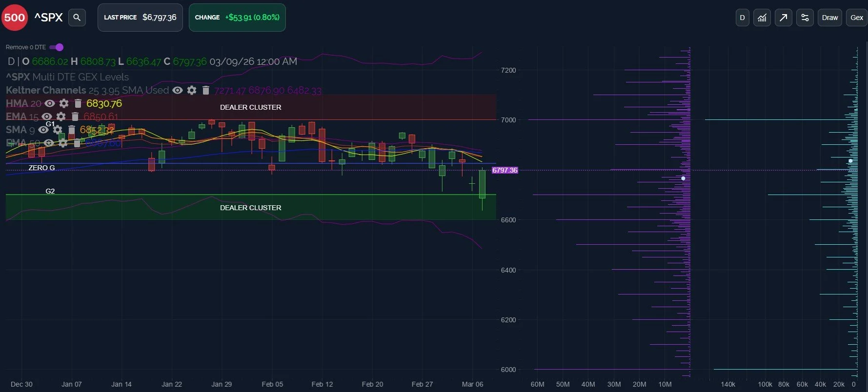 A close above 6850 will bring 7000 into focus as a possible destination, while a move below 6700 opens the door to 6600 and possibly closer to 6500, based on GEX. We will be watching action around these levels in coming days, if/when reached again.