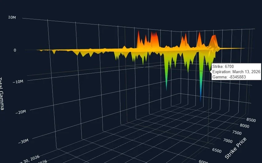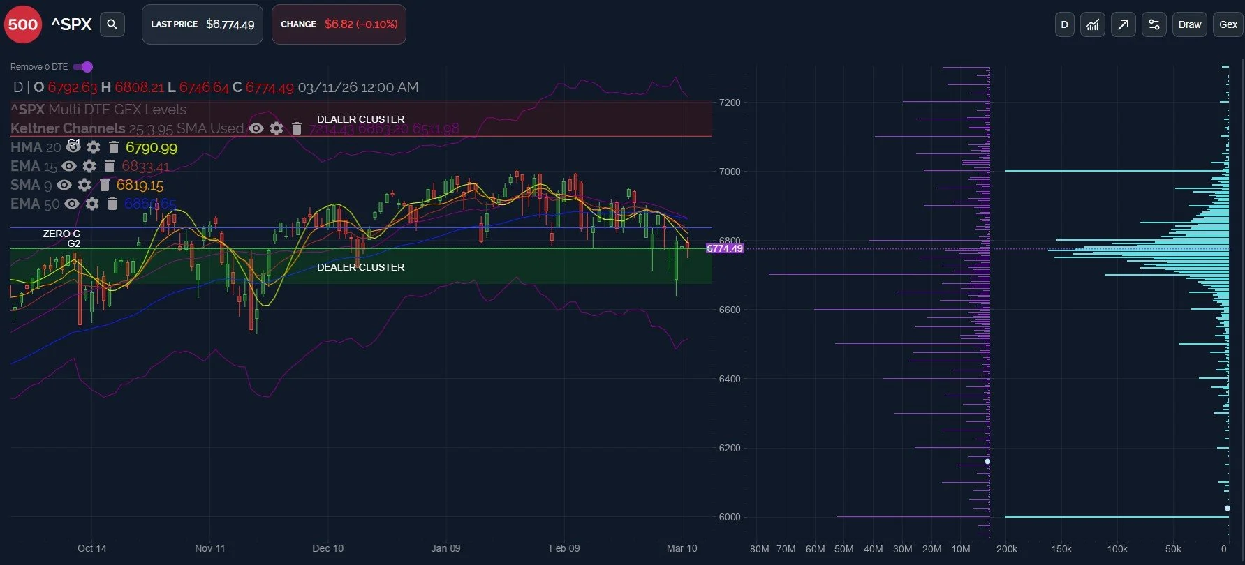 The largest net GEX cluster expiring Friday for SPX is at 6700, and concerningly for bulls, 6575 is also larger than the positive GEX we see at 6900 for Friday or Monday. Can this change by Friday? Of course, but as of now, these negative GEX clusters represent a larger potential target than 6900.