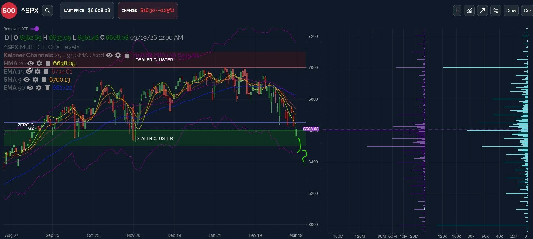 6500 is the 2nd largest net GEX cluster and very close to the weekly 50 EMA we discussed above, making it a valid possible target in the near term, in my view.