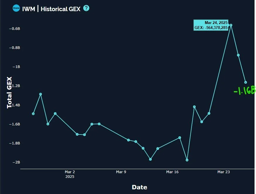 IWM GEX isn’t at an extreme though, it simply had a nasty decline to -1.16B and looks negative. I don’t know how to put lipstick on that pig, sorry!