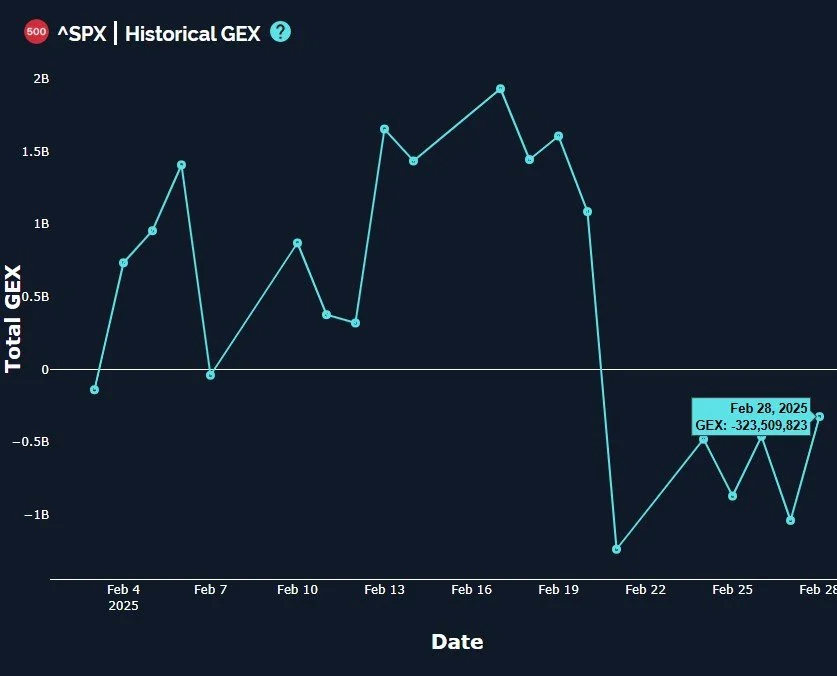 DIA’s GEX is consistent in backing up what we see with the price action and the volume Friday, with GEX moving more positive, a sharp rebound off of the February GEX lows. We’ll continue monitoring DIA as a potential “canary in the cobalt mine (we have to modernize these old sayings)” for a continued rebound of other indices as well, and the action surrounding the next inevitable red day will be very telling as well.