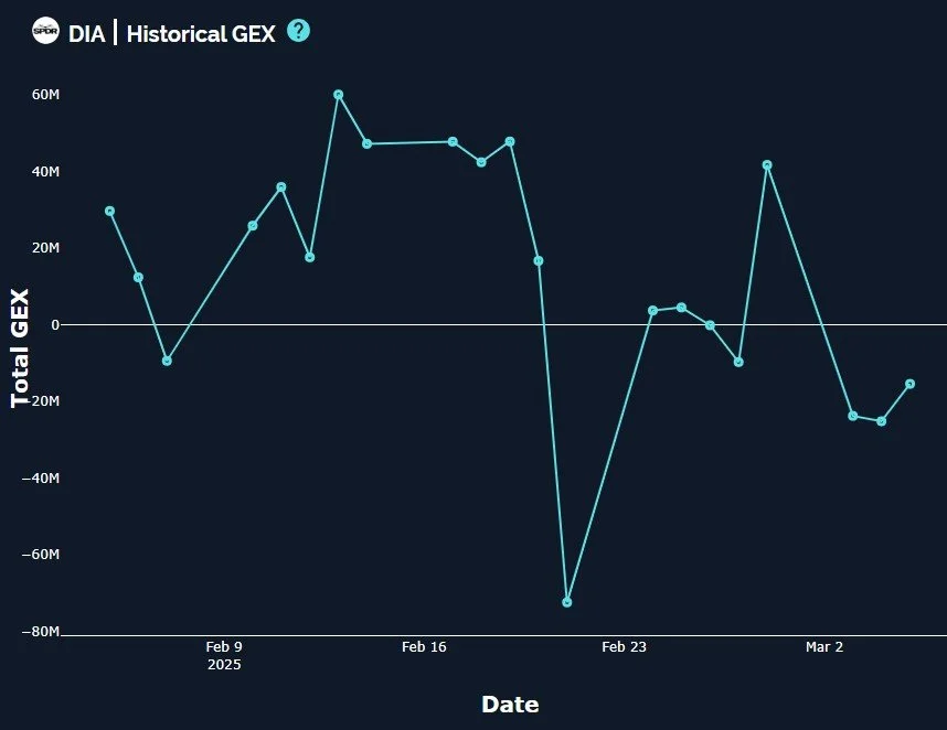 DIA shows several similar attributes to IWM on its chart, including a higher low compared to Tuesday’s low and price sitting fairly deep in the lower Dealer Cluster. In addition, DIA shows some busy option trading activity in the mid-440s, including at the big 445 GEX cluster. The way the structure currently stands, the inevitable larger rebound attempt might get interesting if we continue to show barely any net GEX between 430 and 440. Quick trip higher? We’ll see…Let’s not get ahead of ourselves since we’re still in the belly of the bear currently.