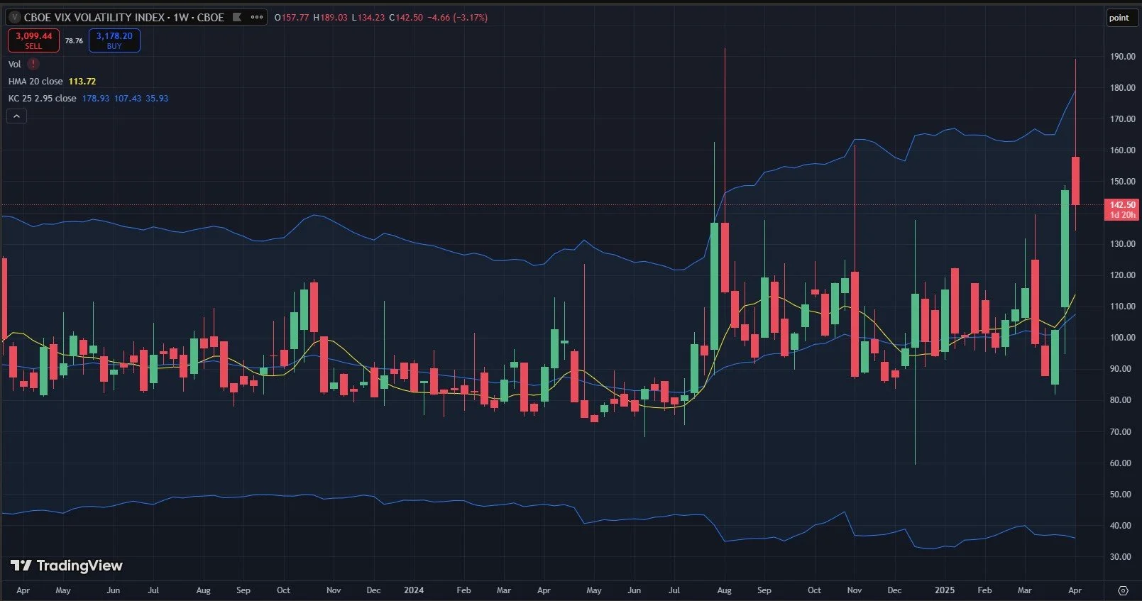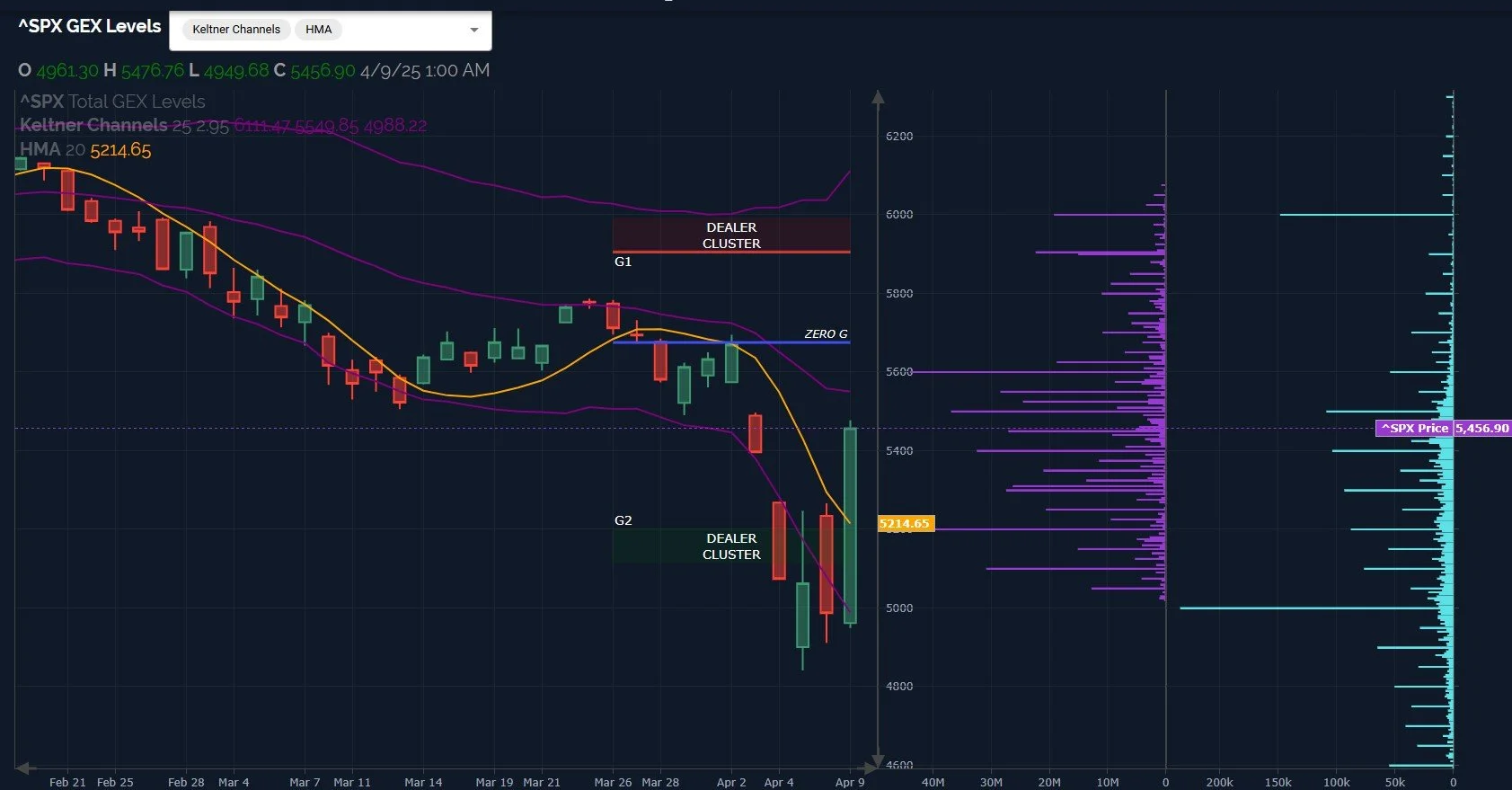 Yesterday, in both the newsletter and YouTube, we noted that VVIX- the index measuring future expected volatility of the VIX- finally reached its upper weekly Keltner channel, an event that can precede final large VIX spikes, but also the last box that may have been necessary to check off to see more of a deflation of the VIX. This process can take days, since the VIX can continue rising after such a spike, but we received fast confirmation today that it’s over (for now), with a further excursion beyond the upper boundary being harshly rejected as the market rallied. The VIX dropped into initial important support around 30, though we still see positive GEX and the largest cluster at 42.5.
