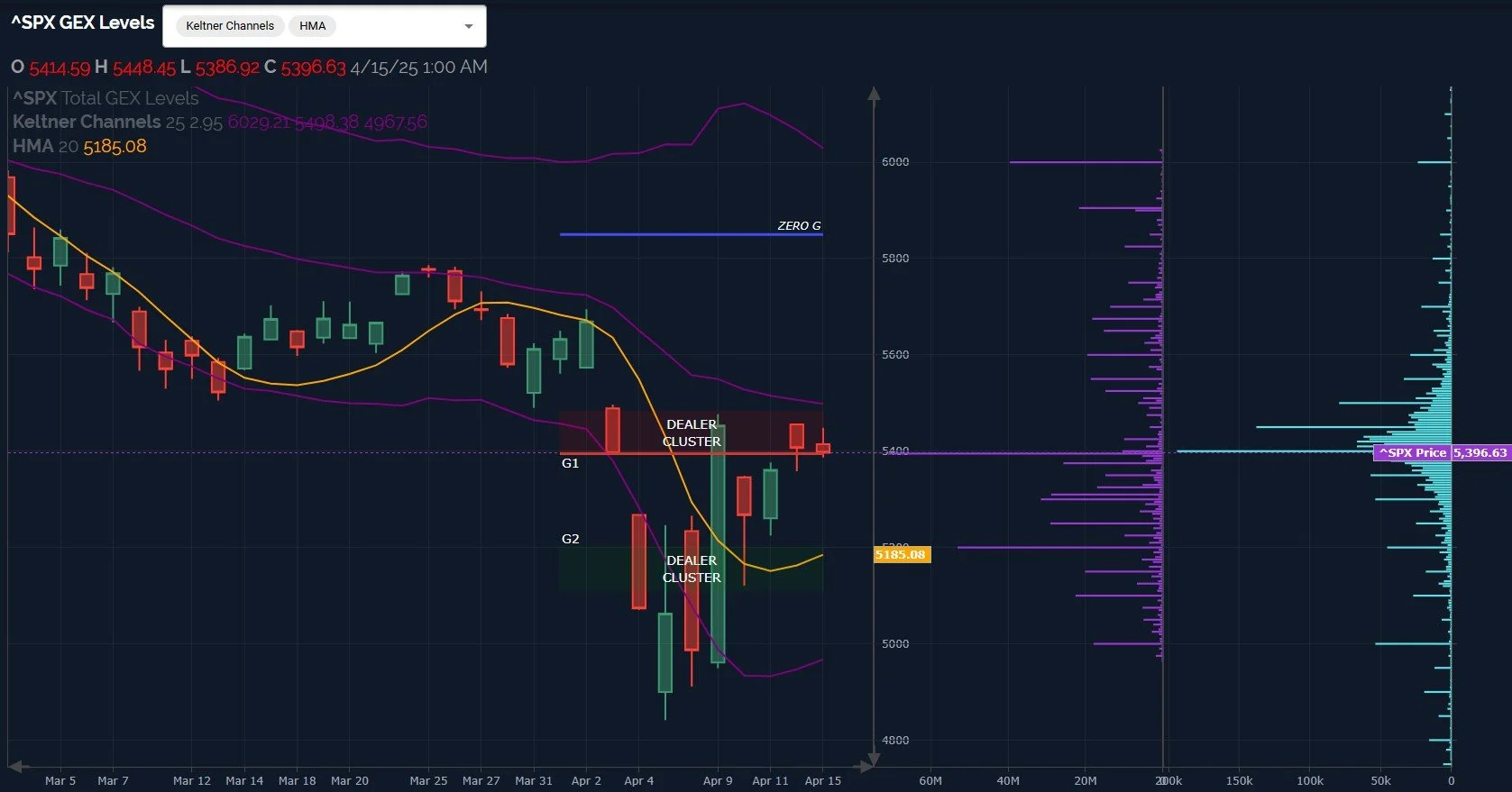 Looks like the VIX will likely be entering tomorrow morning’s premarket monthly VIX option expiration within the 30-35 range we discussed recently, barring something unexpected overnight. But what comes next? Will the removal of hedges due to expiration allow the VIX to move more, thus causing the market to wane, or will the big boys & girls keep it together with a successful break above the middle Keltner (and large GEX clusters) by Thursday? We’ll talk about this question in today’s newsletter. We also posted a new short video on YouTube this afternoon, which you can view by clicking here.
