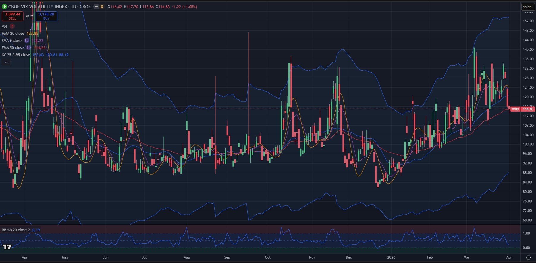 Another indicator I’m watching is VVIX, which found support at the 50 EMA, just as it has this entire rally in volatility. While a natural spot to see a bounce for volatility, the area also highlights the significance of a break lower below the 50 EMA, so we are aware that more than one possibility exists from this area.