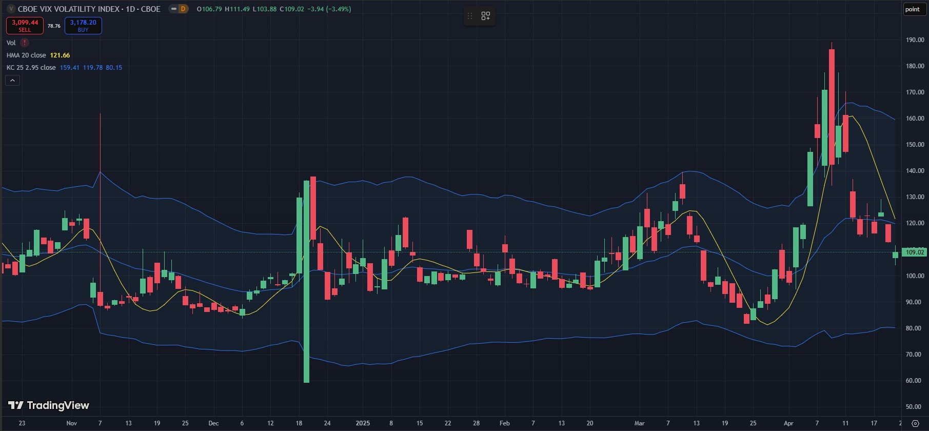 We often talk about VIX and VVIX divergences/negative correlation acting as potential predictors of future VIX spikes. We saw such a divergence today, with VVIX green and VIX red. We also see the VIX at an interesting spot that has marked prior resistance levels since at least late 2024, now acting as support. Given that the VIX is below the Hull, and it’s been a good short ever since closing below the Hull some 10 trading sessions ago, we won’t expect too much upside for the VIX until it can overcome the 32.5 Hull. This could happen intraday and spike further quickly, so it’s worth watching as we sink toward the mid-20s.