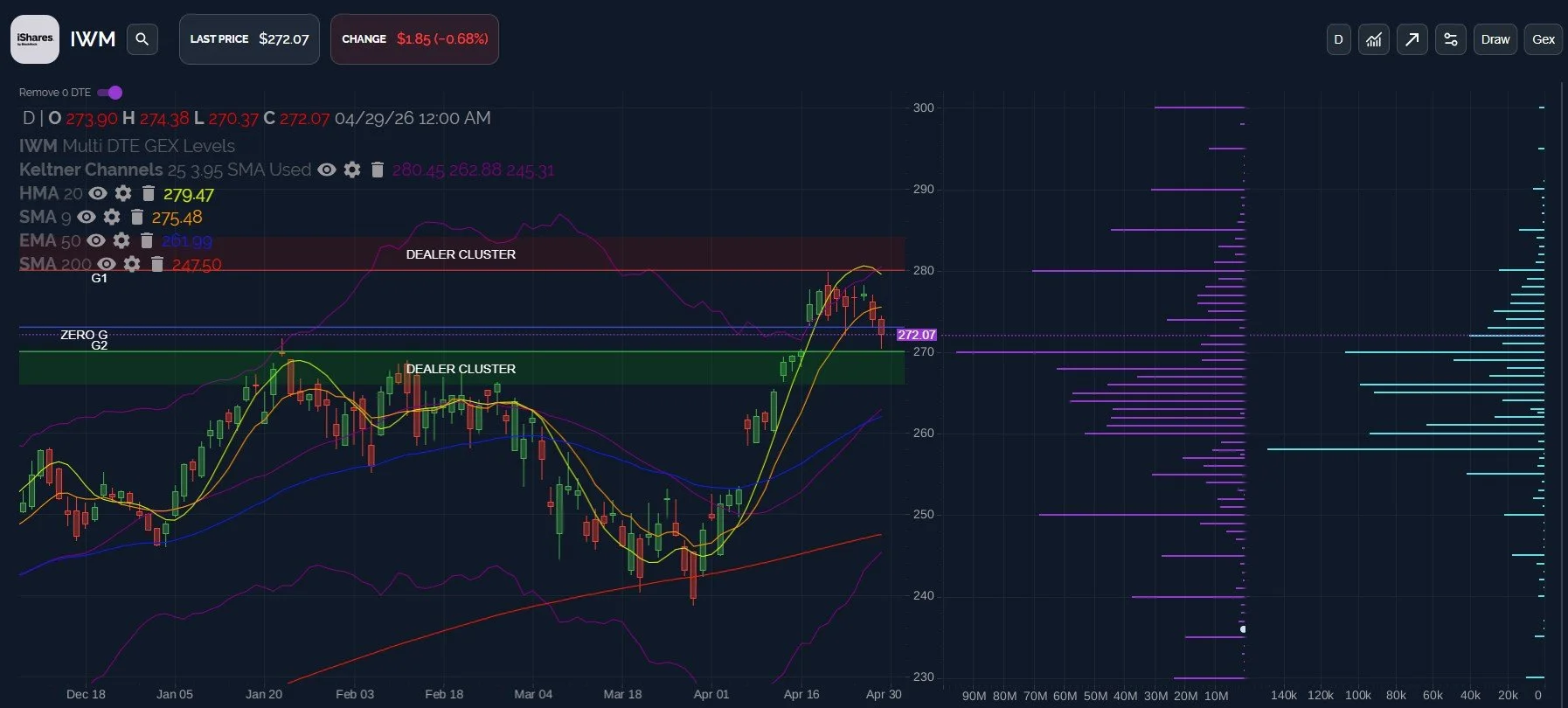 That said, we can’t rule out a spike to 280 before a move down toward 250-260, and the GEX area at 270 held today (so far).