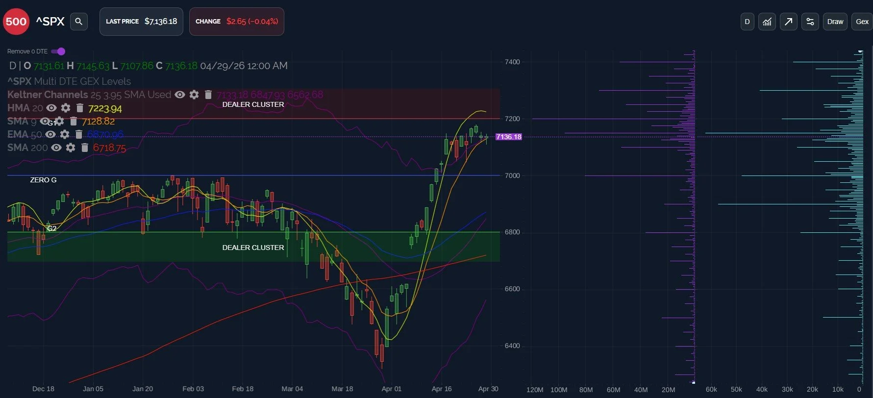 We see heavy volume at 6900, 7000, and 7150, and GEX continues to be skewed higher,