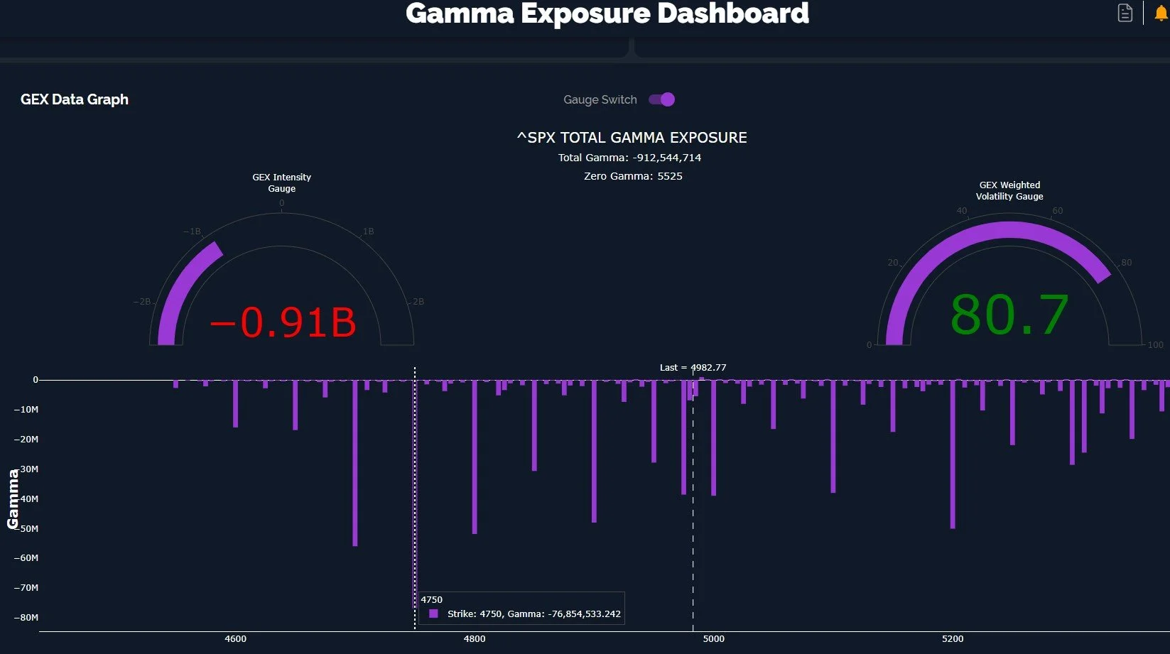 Another positive divergence- SPX saw a sharp increase in GEX (decrease in negative GEX) this morning and held onto most of that shift, even in the face of a steep intraday decline. To summarize, GEX is still negative, but it has improved a lot, and we aren’t seeing a lot of new GEX clusters added at lower strikes. 4750 is a large GEX cluster that remains “sticky” the last couple of days, so we may very well see that level soon. It remains to be seen whether we go straight there tomorrow or if we zig zag more beforehand, but as long as SPX shows the largest GEX cluster at 4750, I’m expecting that zone to be tested before all is said and done. Will mark the low for the year?