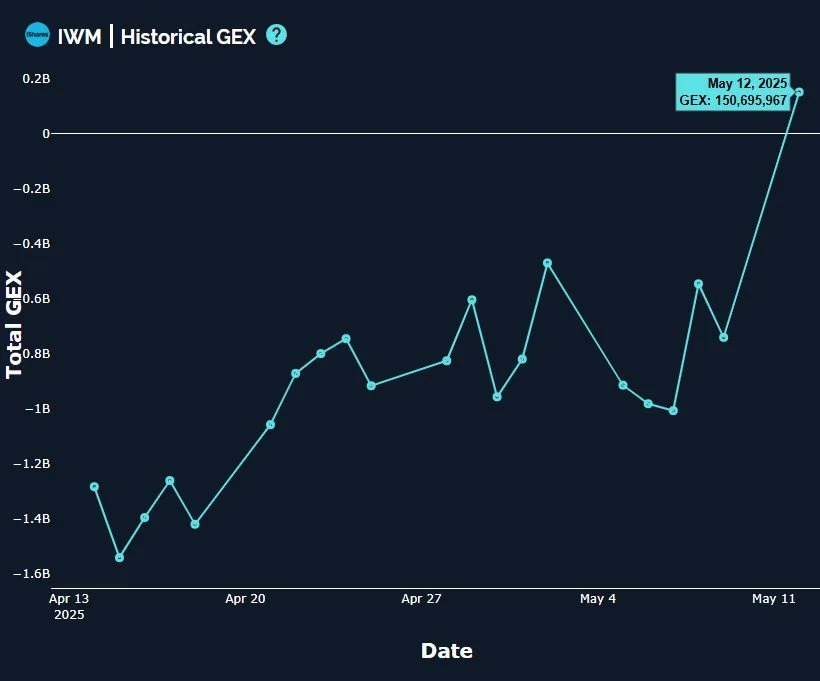 IWM’s net GEX rocketed above the zero line into positive GEX territory, another outcome we thought would happen due to the short squeeze that happened. nearly a 1B swing, pretty dramatic! With much of the increase in GEX concentrated on today’s closing price, price near the upper Keltner channels and within the upper Dealer Cluster zones, and CPI tomorrow at 8:30AM ET, we may finally be near the inflection point for a larger pullback, even if it’s within the context of a buy-the-dip opportunity.