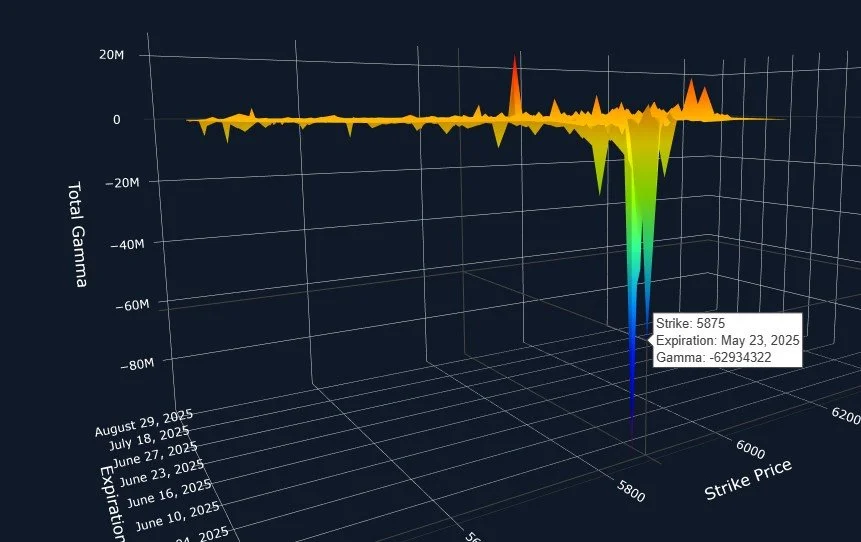 A few GEX clusters expiring tomorrow deserve attention: We see 5800 and 5900 in similar size, and the largest GEX cluster expiring is a big negative cluster at 5875. Does this mean 5875 is a target for tomorrow? I’d say 5875 has good odds of being hit, though that doesn’t mean we close near 5875. We also saw SPX GEX slightly decline further today. In summary: Based on the current picture, a move toward 5800 tomorrow is likely a buy, and any move toward 5875-5900 is likely a sell, of course with the caveat that I will consider new data after the cash session opens before placing any trade with an intraday time horizon.
