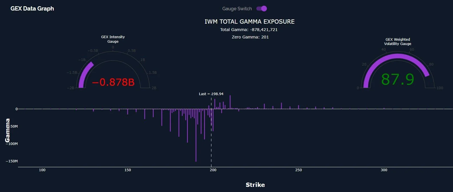 In context of what we wrote in yesterday’s newsletter, a drop toward 190 may represent a buying opportunity in theory, and seeing all of the negative GEX disappear upon the next rebound higher may fuel a larger rally for IWM compared to what we saw since the recent lows. We’ll need to see how GEX shifts as the next pullback unfolds, and we’ll also watch the other indices and the VIX for potential clues as well.