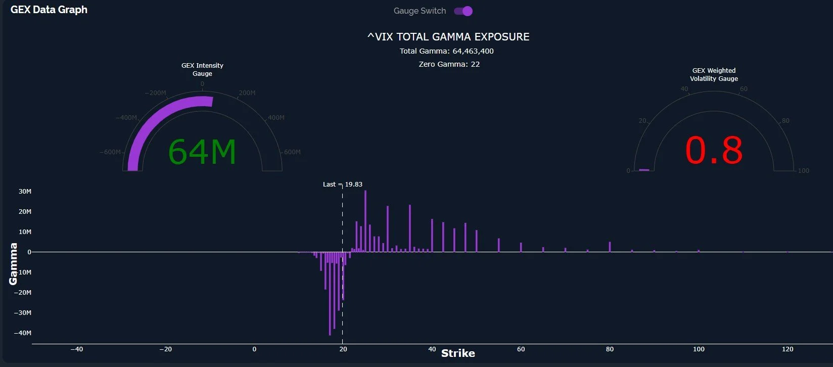 An interesting shift since last week is the VIX showing net positive GEX, with the large negative clusters appearing to be more of a support area between 17 and the current level and the positive GEX stemming from participants positioned from 25 up to 50 with positive GEX. We don’t know exactly what will happen tomorrow, but we have some parameters to watch and some possible actions in mind depending on what comes first. We’ll post our observations in Discord and we’ll also discuss them in the morning live stream, so we hope you’ll join us!