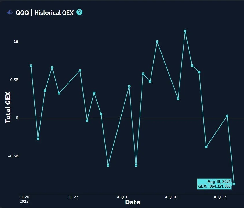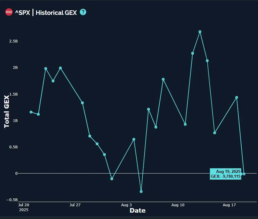 With NVDA earnings August 27, and NVDA showing GEX at 185-190, we are cautious regarding sustained downside, with good potential to see either an immediate rebound and a high into NVDA earnings or potentially a low prior to earnings, implying a contrarian scenario in the short run.