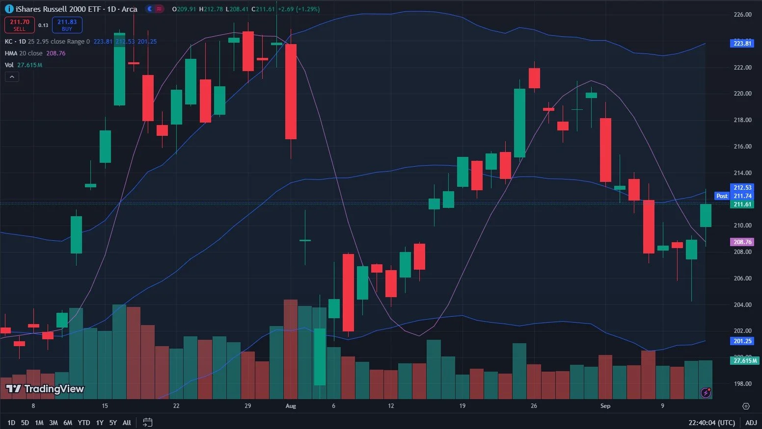 If markets continue to rally, IWM may end up being the late catch-up champion, as it has only just now retaken the Hull Moving Average and is retesting (though initially rejected by) the middle Keltner Channel. It’s entirely possible that this rally fails, and rejection at this zone would be a logical spot, but if SPX/QQQ are leading us, IWM has potential upside of another 5%+ from here, with 220-223 matching the Keltner channels as well as our GEX-identified Dealer Cluster Zone.
