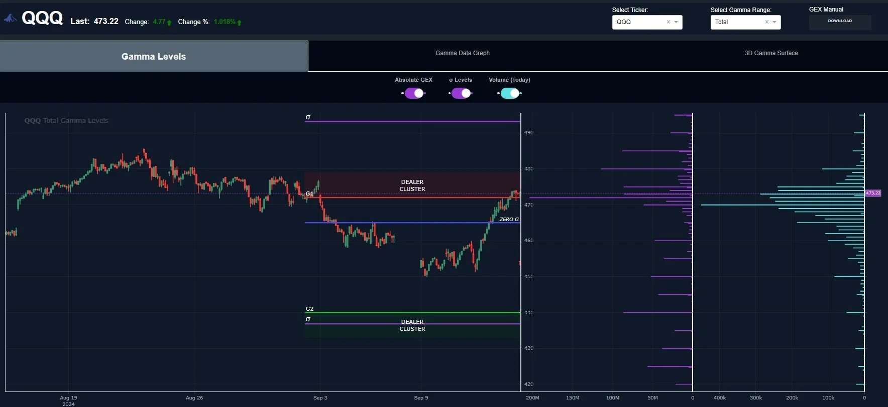 QQQ GEX Levels Chart: www.geeksoffinance.com