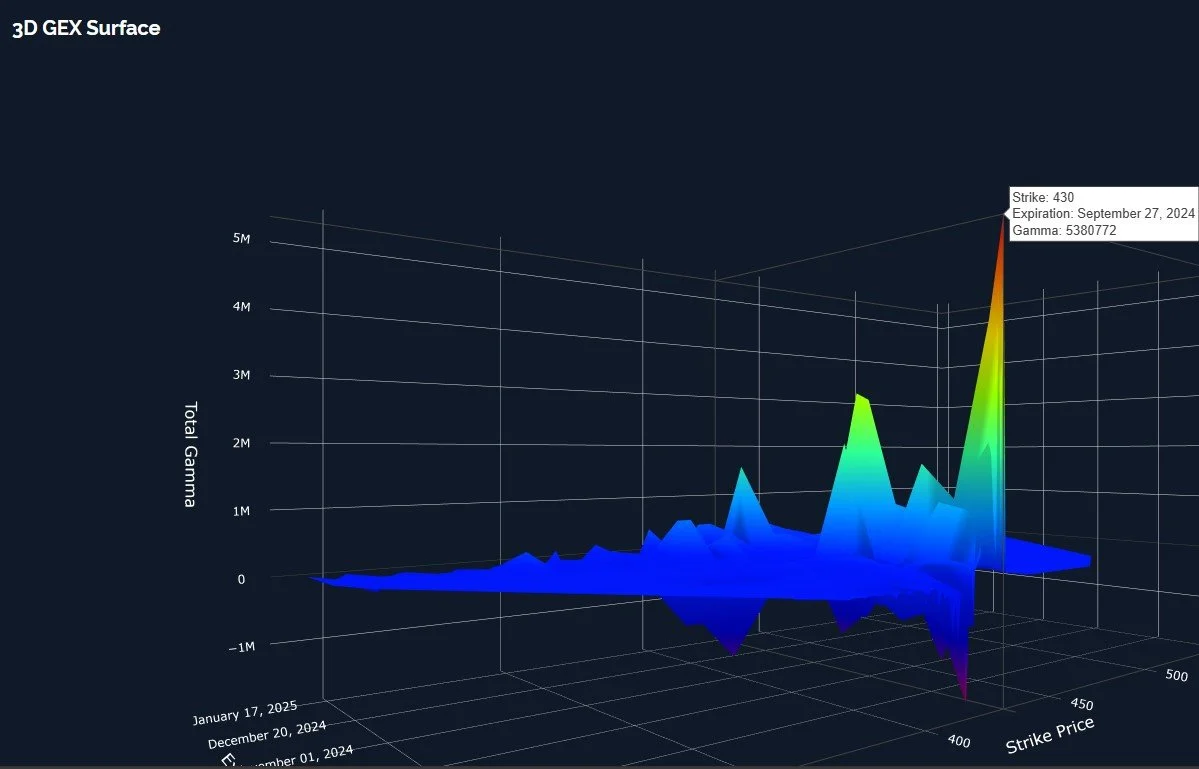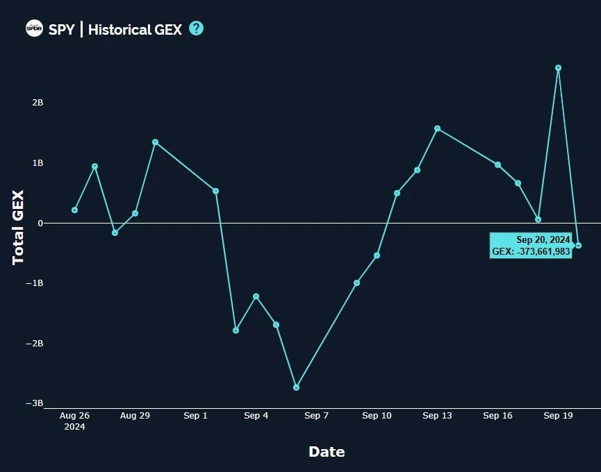 DIA positive GEX is focused on 9/27 instead of 9/30, which might be an even more helpful hint as we approach quarter end. Perhaps we will see the high on Friday instead of Monday, in other words. All of this is subject to evaluating GEX as it may or may not change as we go through the week, so stay in touch with us via Discord (and this newsletter) where we will try to share our observations in a relatively timely manner.