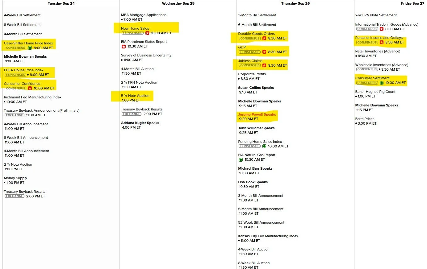This week is fairly light as far as economic activity, though we’ve highlighted a few events that may add to potential intraday volatility, so I would guess most of this weeks movement will be related to quarter-end fund flows and other changes that may be tough to anticipate using the usual signals. Stay on your toes and join us in Discord where we’ll share intraday analysis as we navigate each day heading toward the end of Q3!