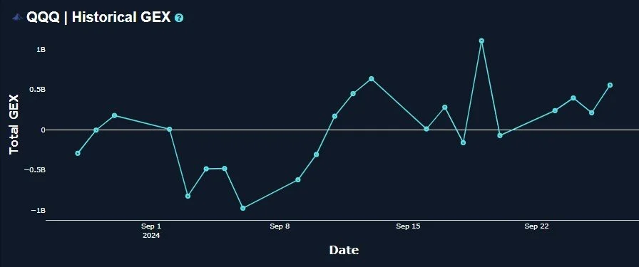 QQQ saw a similar uptick in GEX, so we’re still looking fairly positive from that perspective.
