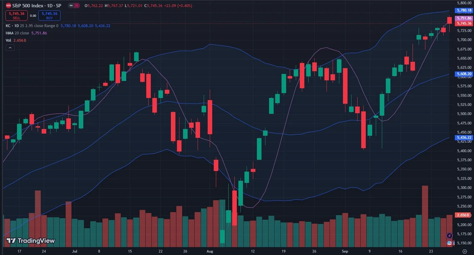 Both SPX and QQQ maintain a little room overhead as far as the Keltner channels go, and with this being quarter-end, month-end, as well as a big GEX target, it wouldn’t surprise me to see a little dance back and forth across the 5750 level, maybe even reaching close to 5800 before we see more downside. QQQ 496 seems to be an area to watch.