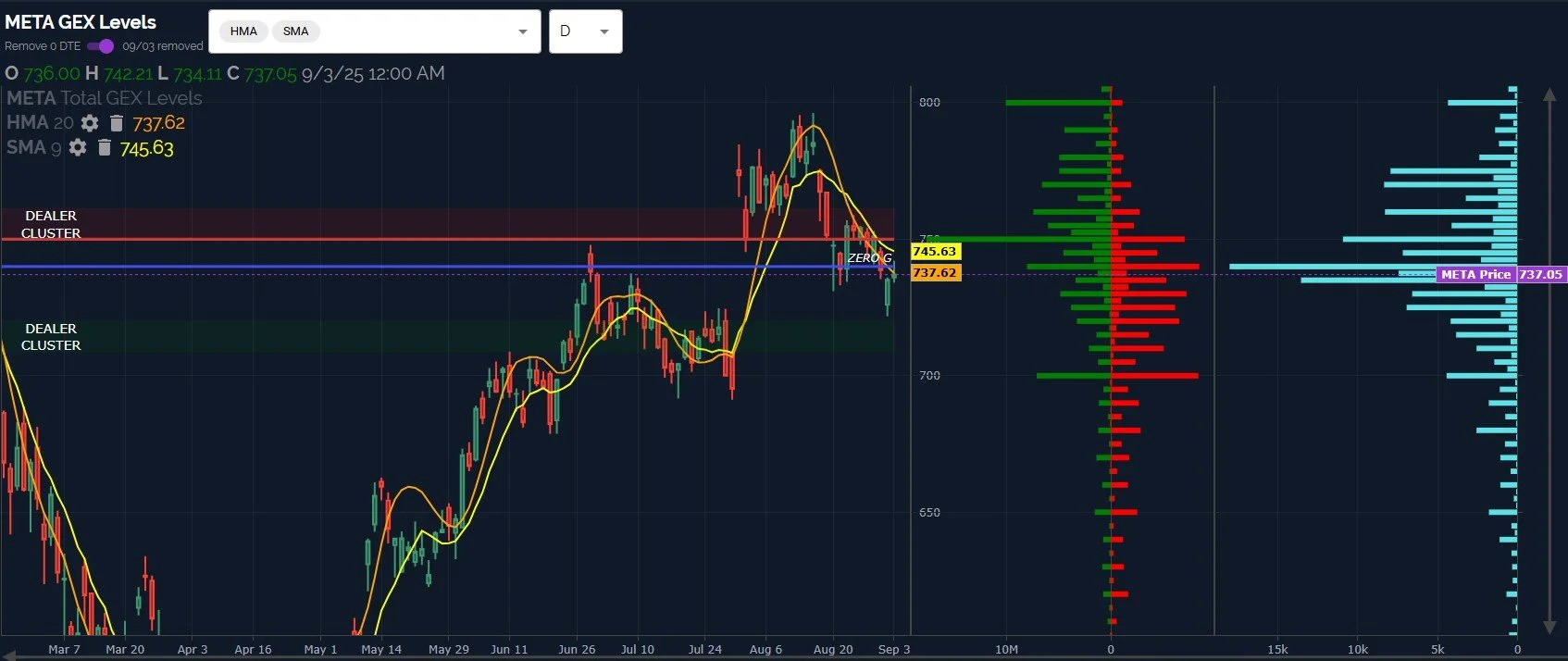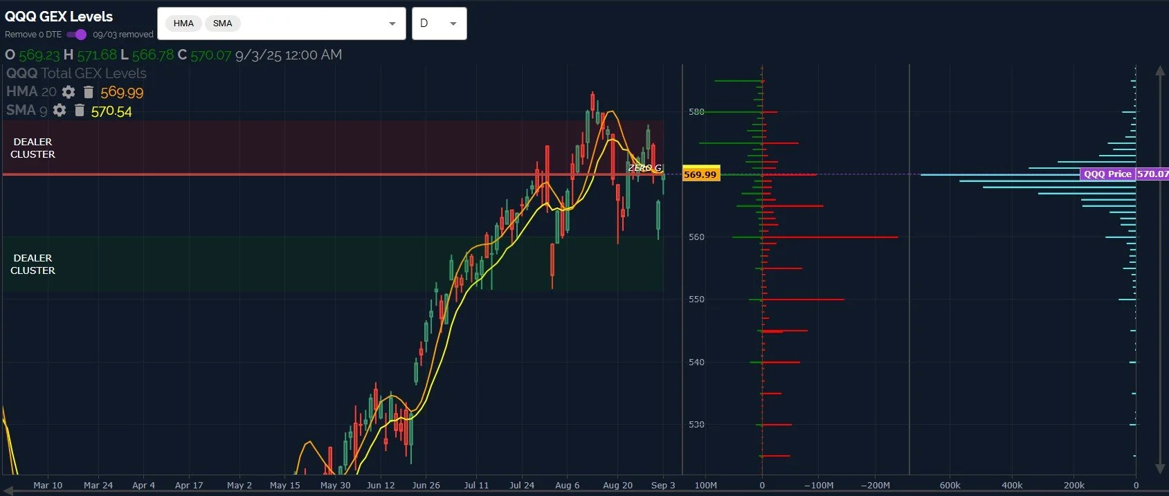 580-583 represents an upside target range based on both GEX as well as confluence with the weekly Hull.
