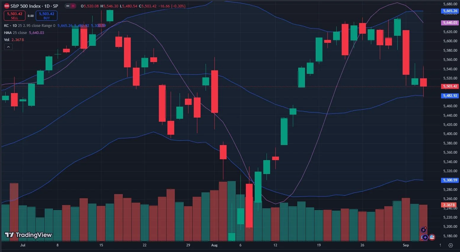 In yesterday’s newsletter, we gave the slight edge to the bears in the short term, and today the S&P finally tagged the 5480 we were looking for yesterday, bouncing almost perfectly off of the middle Keltner channel. Notably, we see a lower high and a lower low, which is not a good look, though overall we are dealing with a market that has apparently been awaiting the big jobs number that we’ll see at 8:30 AM ET before the next volatility trigger takes hold, whether up or down from here.