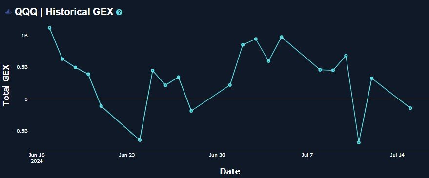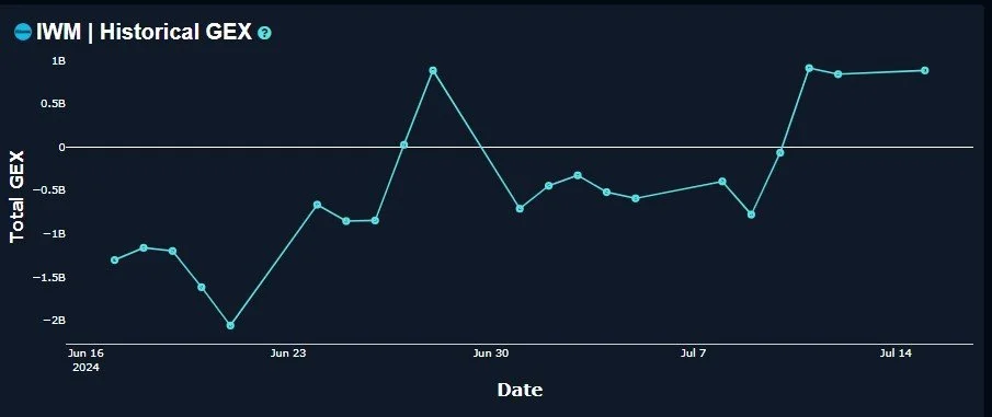 IWM GEX continues to be as elevated as possible, signaling a potential move higher. Note that the current GEX highs are lower than the highs from the end of June.