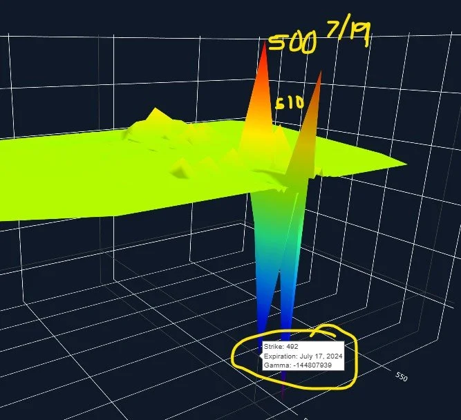 If we consider the negative GEX expiring tomorrow, I give a slight SPECULATIVE edge toward some sort of downside tomorrow (even if it’s only for part of the day) to kill the higher strike calls and then a move up toward that 500-505 area by Friday.