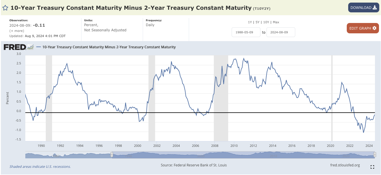 On top of all that, the 10 year-2 year chart appears to be un-inverting. Another pre-recession signal with a near perfect track record.